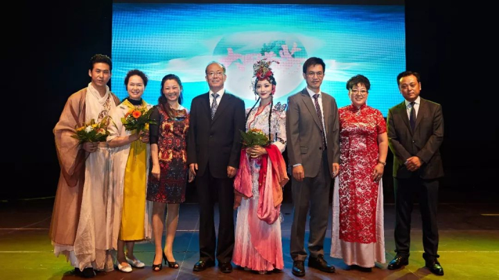 中國駐法蘭克福總領事館副總領事盧奇志觀看了演出(左一)