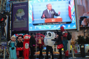 纽约时报广场Disney大屏幕上,于美国东部时间2022年1月31日下午开始,到2月3日,43街的大屏幕分别播出“迎新春,祝冬奥”倒计时活动。该活动由久安电视国际传媒集团和世界和谐基金会主办,为庆祝华人新年及北京冬奥会即将召开。活动期间联合国官员、美国政界人士、歌星等通过视频方式,纷纷为全球华人送上春节祝福,并预祝2022年北京冬奥会圆满成功!