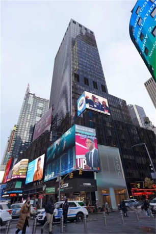 As Times Square,one of the world's most famous media and advertising capital,celebrates the Chinese New Year of the Tiger,a beautiful sight appears on the two prime view screens,the Disney screen(between45th and46th Streets)and the43rd Street corner screen:UN agencies,American politicians,singers and other international peace-loving celebrities congratulating Asians for Lunar New Year and sent their best wishes for the upcoming Beijing Winter Olympics.
