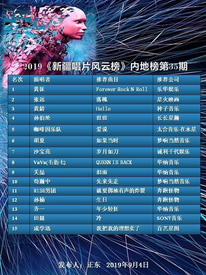 2019《新疆唱片風雲榜》第35期內地榜試聽
